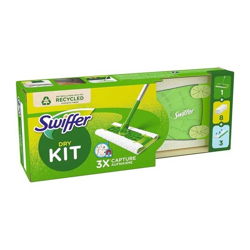 1 Scopa Swiffer + 8 Panni Cattura Polvere Dry + 3 Panni Lavapavimenti Wet